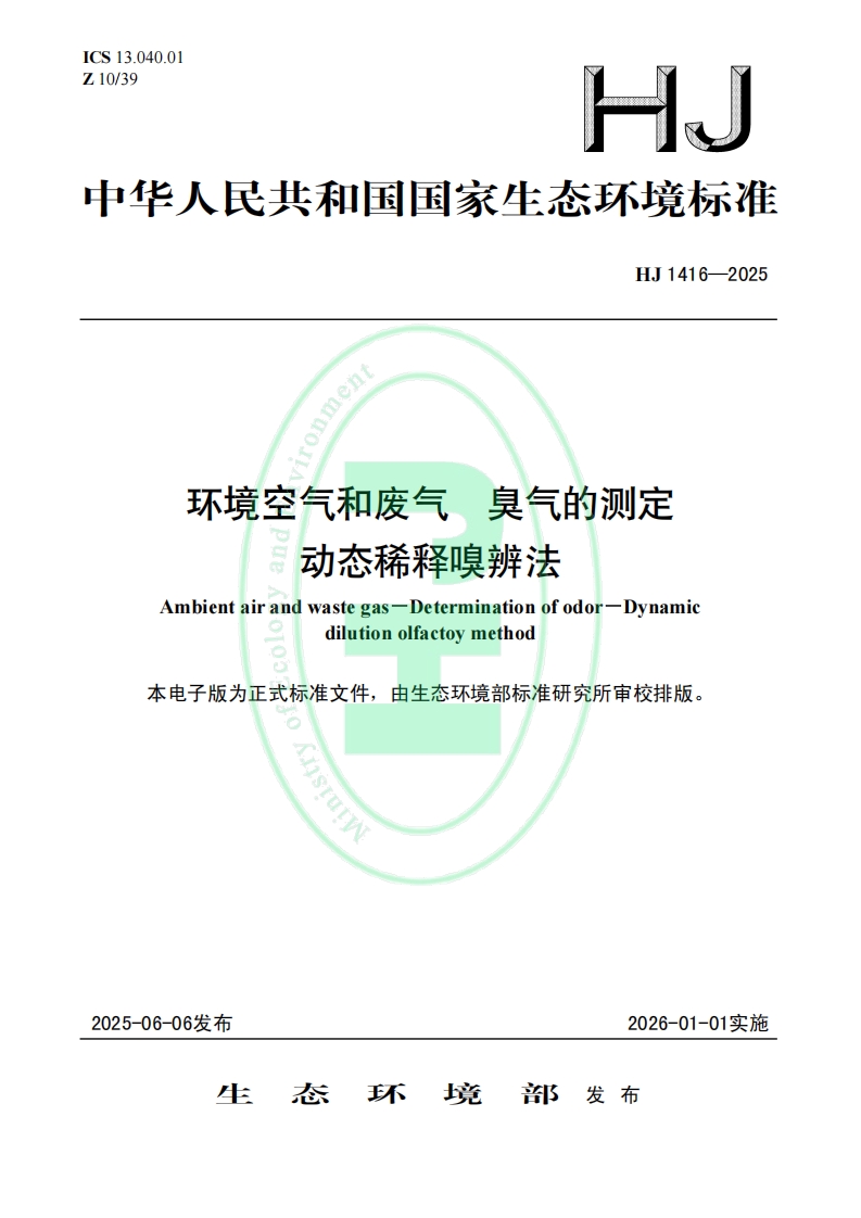 為規(guī)范環(huán)境空氣和廢氣中臭氣的測(cè)定方法,生態(tài)環(huán)境部近日發(fā)布了國(guó)家生態(tài)環(huán)境標(biāo)準(zhǔn)《環(huán)境空氣和廢氣 臭氣的測(cè)定 動(dòng)態(tài)稀釋嗅辨法(HJ 1416—2025)》。本標(biāo)準(zhǔn)為首次發(fā)布,自2026年1月1日起實(shí)施。