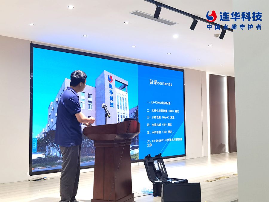培訓(xùn)過程中,連華科技作為業(yè)內(nèi)知名的水質(zhì)檢測(cè)儀器及耗材生產(chǎn)廠家,對(duì)清瀾系列便攜式水質(zhì)測(cè)定儀LH-P700進(jìn)行了詳細(xì)的介紹和培訓(xùn)。上午的理論培訓(xùn)環(huán)節(jié),連華科技技術(shù)人員對(duì)水質(zhì)測(cè)定儀的原理、功能、常規(guī)污染指標(biāo)實(shí)驗(yàn)操作方法及注意事項(xiàng)進(jìn)行了全面系統(tǒng)的講解,讓參訓(xùn)人員對(duì)LH-P700這款水質(zhì)測(cè)定儀有了更加深入的了解。